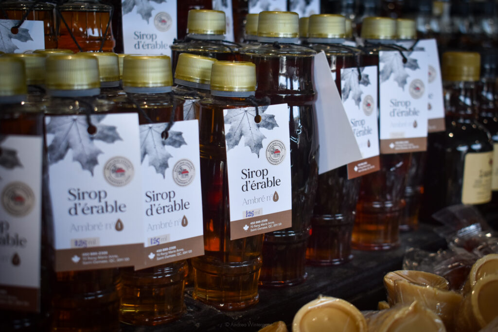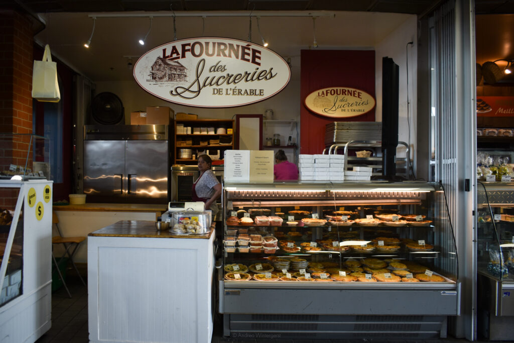 At La Fournée des Sucreries de L’Érable (which roughly translates into “the bunch of maple sweets”), we bought some pouding chômeur and tarte au sirop d’érable – two of the most iconic Quebecois desserts.