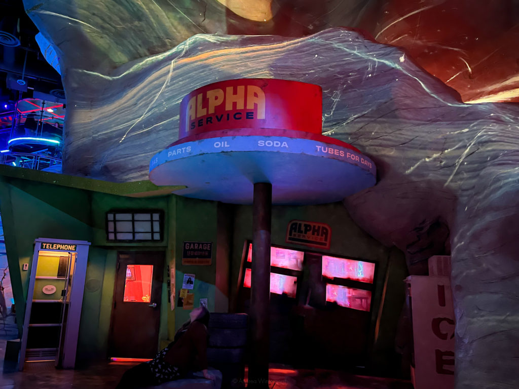The frequent travel through portals took most of my energy (despite not going on the slides, which are currently closed), so, exhausted from my sleuthing, I found myself wandering into the bar hidden behind the store’s pharmacy.