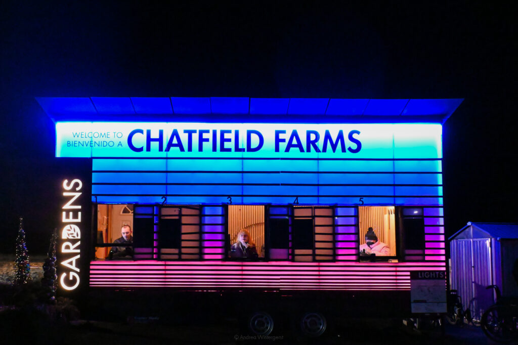 Rounding out our little day of exploration, we pulled up to the unevenly lit parking lot of Chatfield Farms which for the longest time I argued was probably not as interesting as Denver Botanic Gardens’ main event, Blossoms of Light. And although it’s definitely less grand, it’s still a really nice experience that I wholeheartedly recommend, especially if you’ve been lucky enough to experience the aforementioned event before.