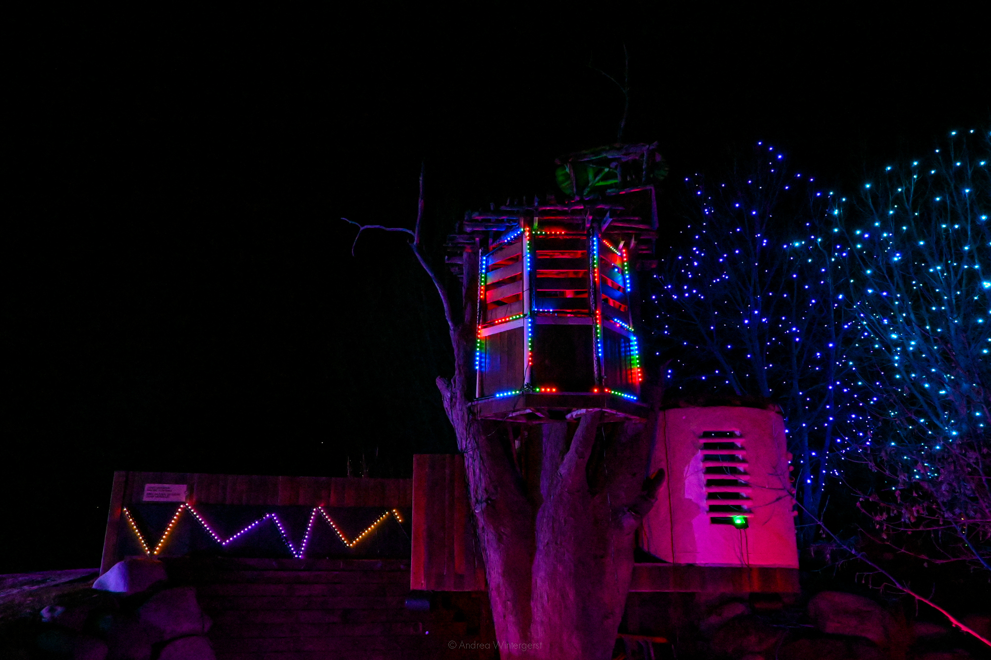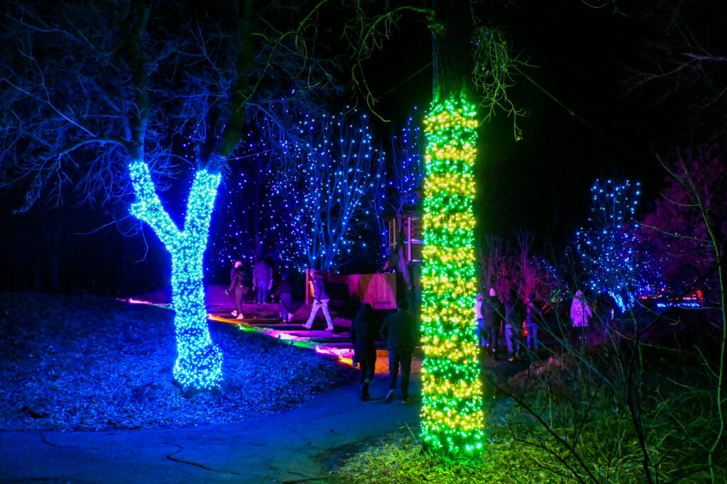 Lights dance around in sync to music and follow you all throughout the almost mile-long trail.